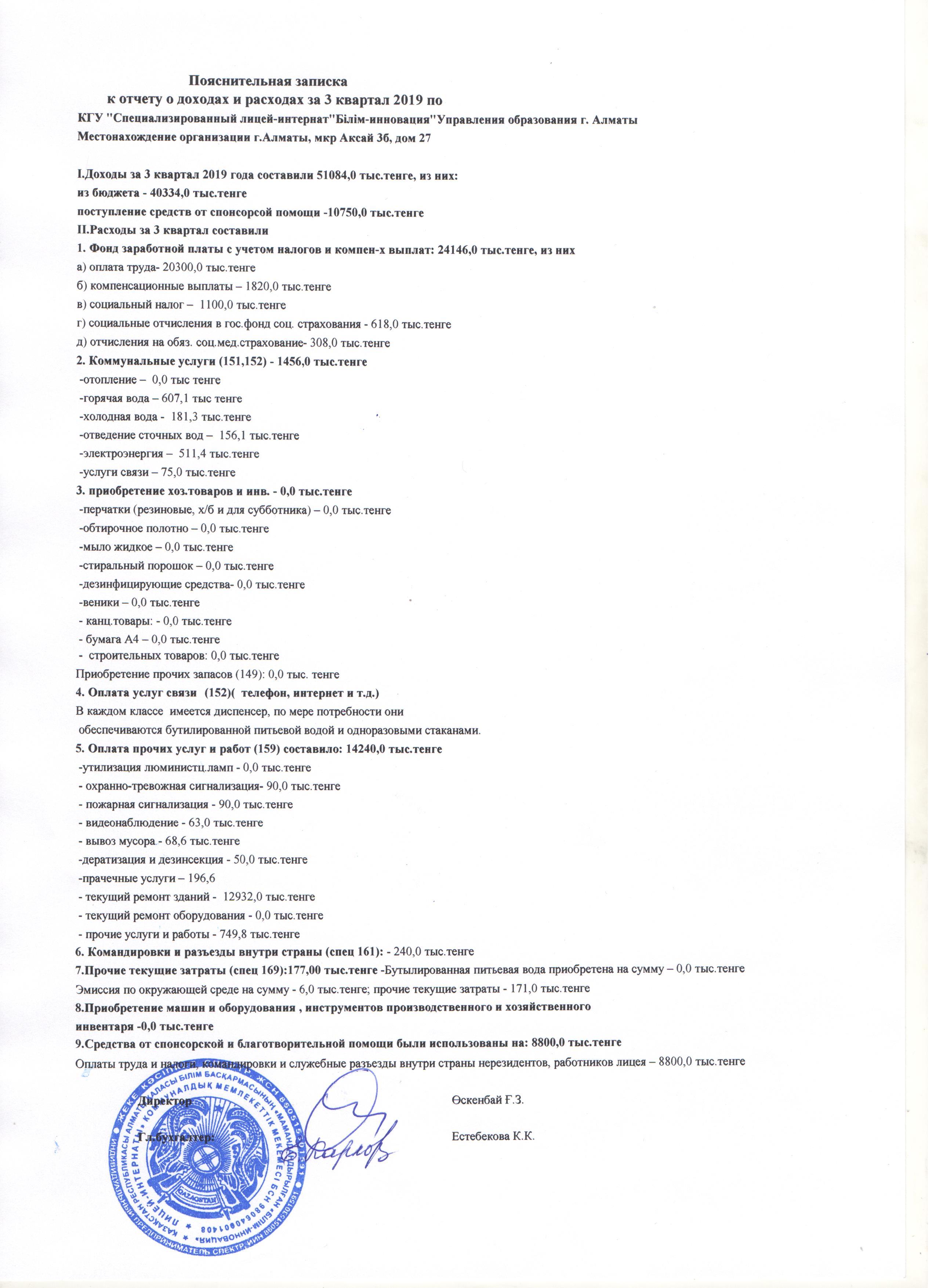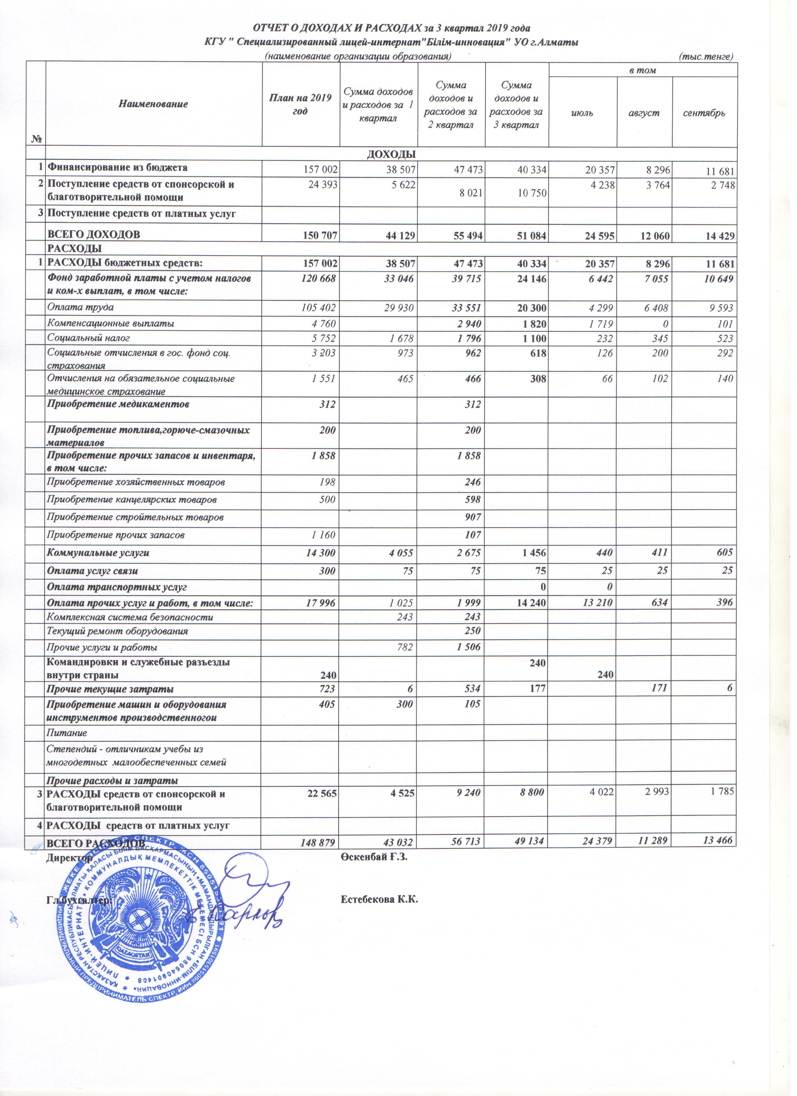 » Отчет о доходах и расходах за 3 кв 2019