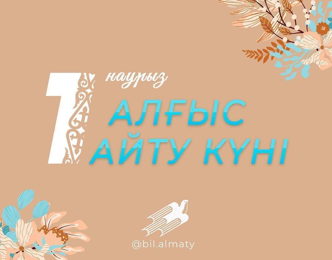 01 март 2021 0 1 2 3 4 5 1 наурыз - алғыс айту күні Шұғылалы көктемнің алғашқы күні 1 наурыз елімізде жалпыхалықтық мереке - Алғыс айту күні.Баршаңызды айтулы мерекемен құттықтай отырып, шексіз алғысымызды білдіреміз.Елімізде тек тыныштық пен ынтымақтастық болсын!