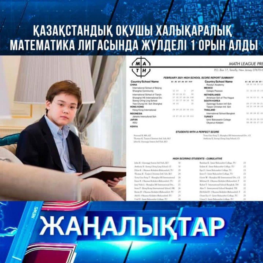 Сүйінші! Біздің оқушымыз Нұрасыл Бейсенбай The Math League – Халықаралық математика лигасында топ жарды.